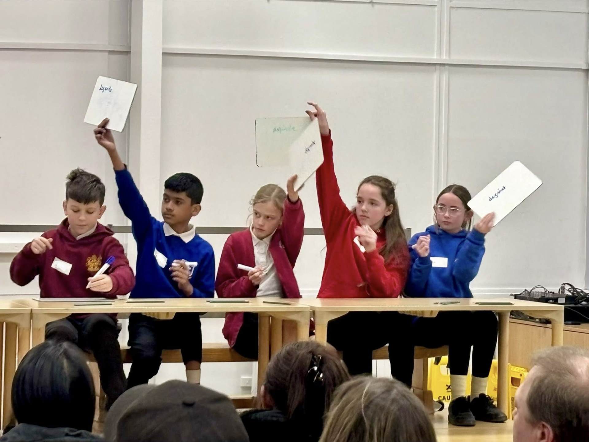 In front of a live audience of families, teachers and peers, the finalists competed in three demanding rounds: individual spelling, a wordsearch challenge and a quick‑fire round. Each pupil demonstrated exceptional courage, determination and linguistic skill throughout the evening.